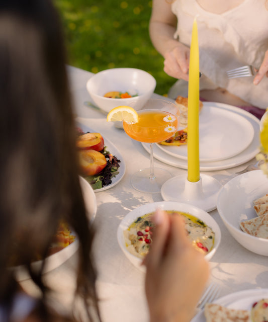 Soft, sun-washed, and quietly striking—Speckled White is the season’s most versatile layer. Perfect for backyard spreads, morning rituals, or anything that ends in a toast.